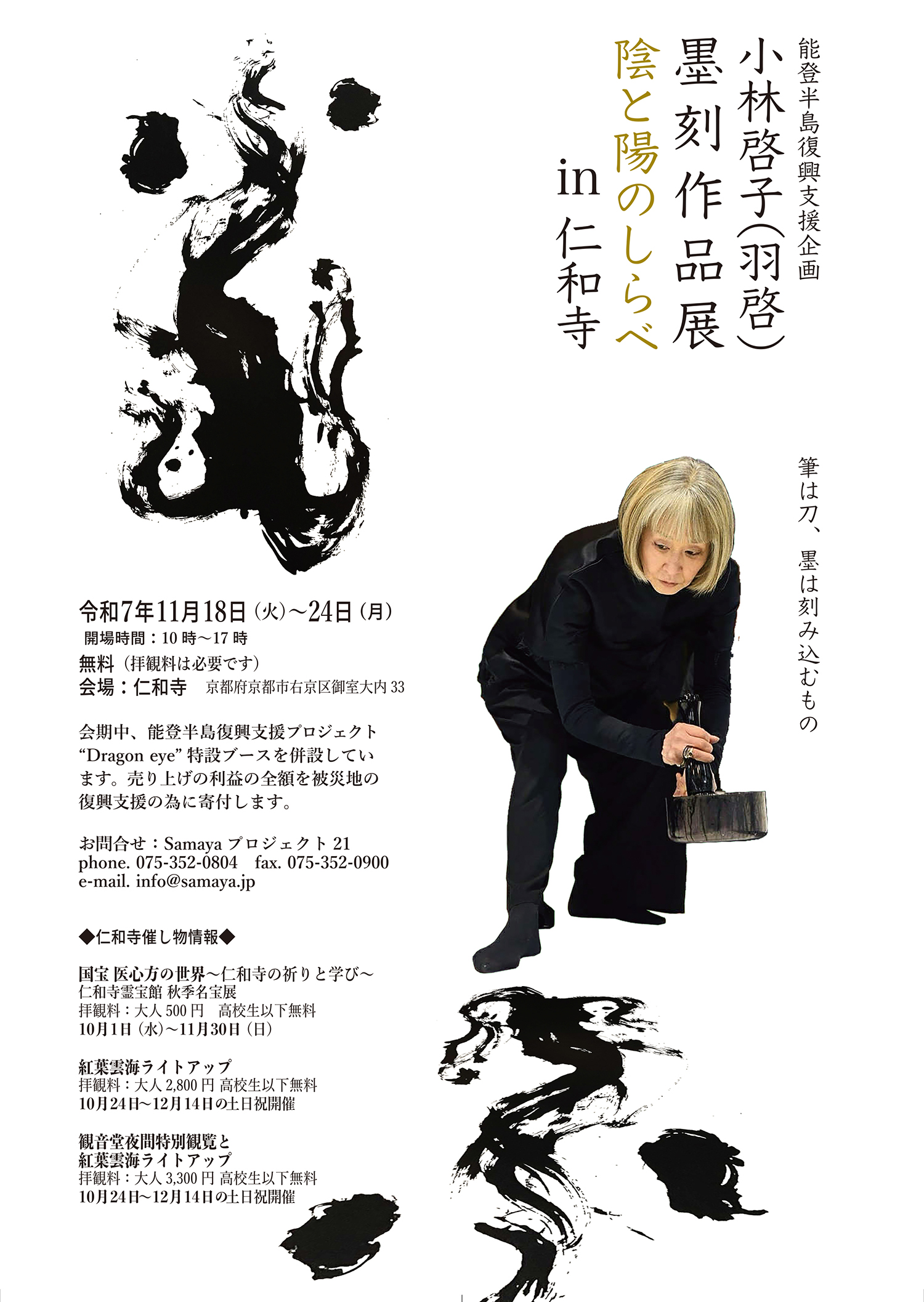 能登半島復興支援企画「小林啓子 墨刻作品展」11月18日〜24日 | 世界遺産 真言宗御室派総本山 仁和寺