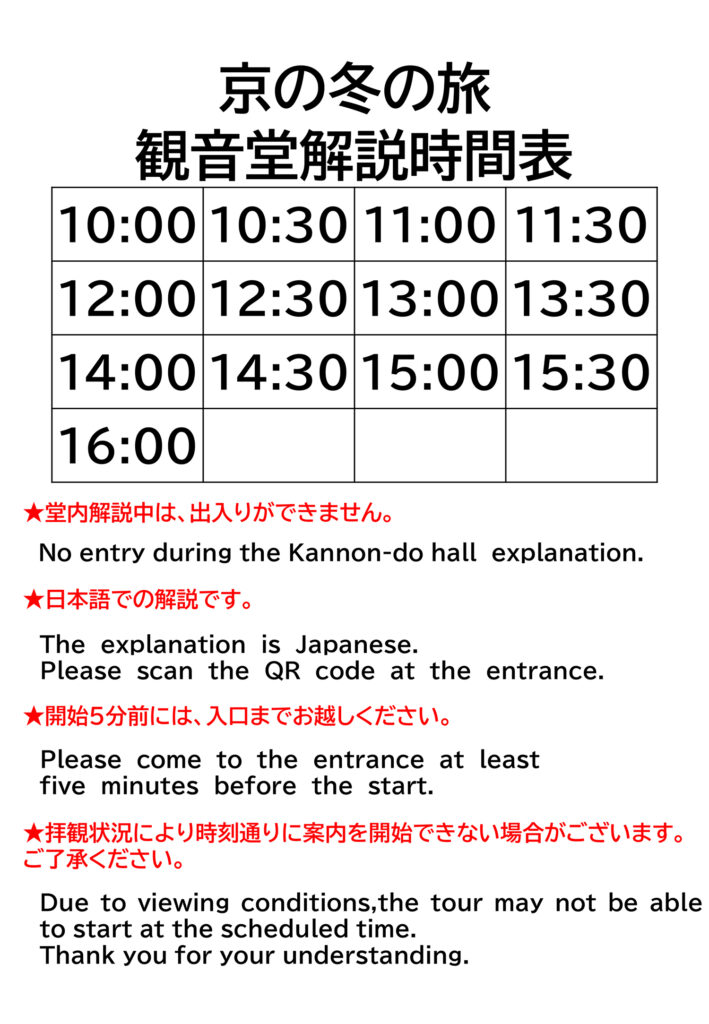 ⭐️京の冬の旅「観音堂特別拝観」入場時間は、左記の通りとなります。途中の入退場はできませんので予めご了承ください。