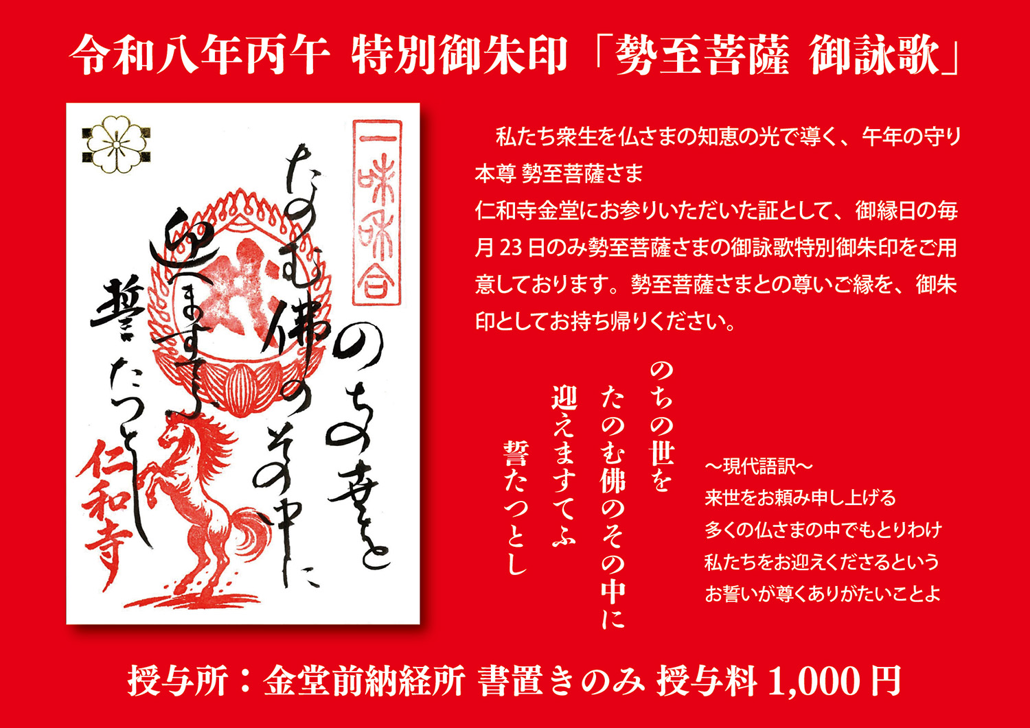 令和八年丙午 特別御朱印「勢至菩薩 御詠歌」毎月23日のみ授与いたします
