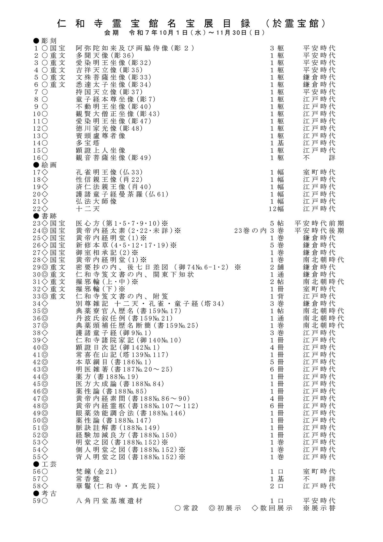 霊宝館秋季名宝展 10月1日(水)〜11月30日(日)